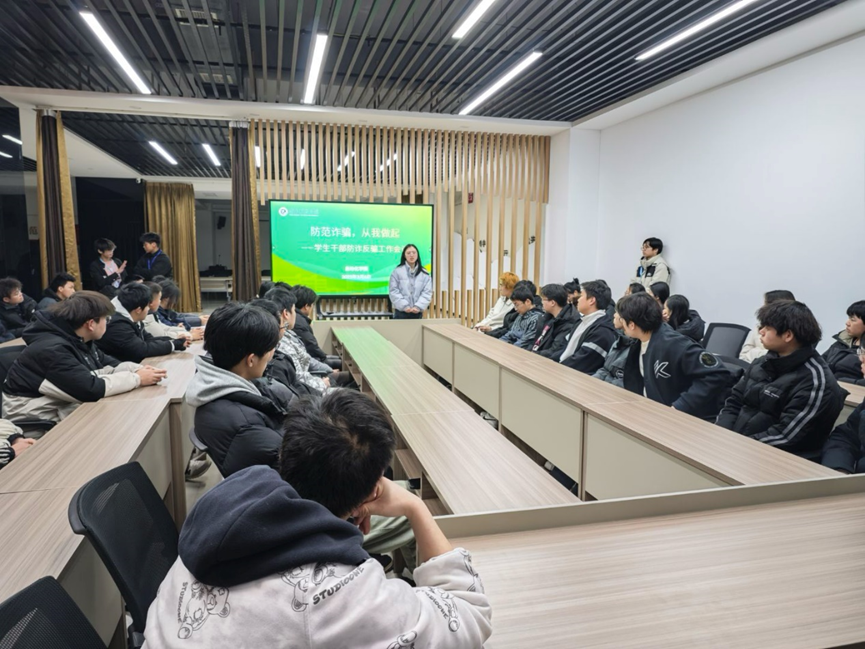为强化寝室反诈基础作用,公司召开寝室长大会,辅导员强调反诈工作重要性,要求寝室长做好本寝室反诈宣传和监督,传递反诈知识,及时发现并制止受骗风险。