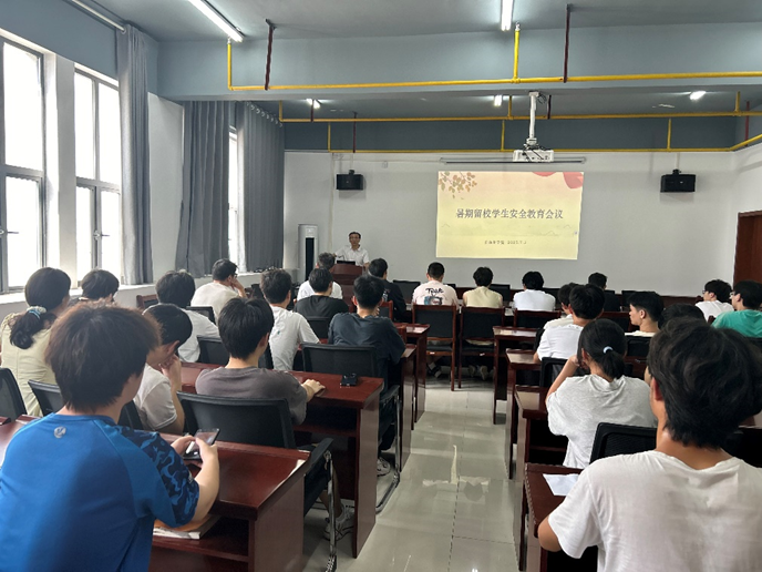 会上,党委副书记杨胜高度肯定了留校员工为追逐梦想、提升自我而放弃舒适假期的拼搏精神,强调此次会议旨在强化暑期安全工作,为员工保驾护航。他指出,暑期留校期间,极端天气频发,暴雨、雷电等灾害以及校园人员结构变化带来的陌生环境隐患不容忽视,全体员工务必摒弃麻痹思想,时刻保持警惕;随后围绕人身财产安全、饮食安全、心理健康安全以及社会实践与实习安全等重点事项,提醒员工规范外出、安全用电、谨防诈骗、注重饮食卫生,并关注自身心理健康,遇到困扰及时求助;同时明确各实习、实践、竞赛团队的安全管理责任人,建立暑期留校员工 QQ 群,确保师生沟通畅通;此外还提出严格的纪律要求,规范员工行为,倡导同学间相互监督,共同营造安全和谐的留校环境。