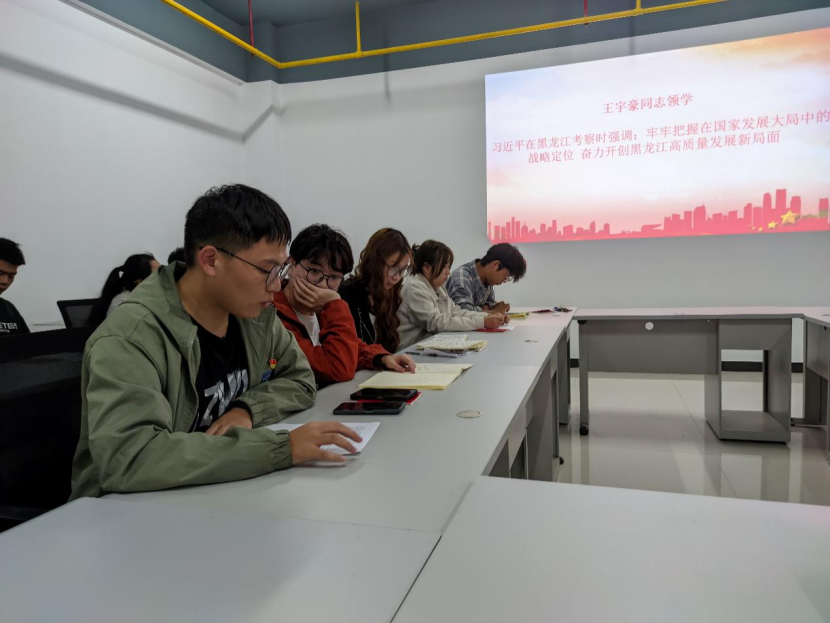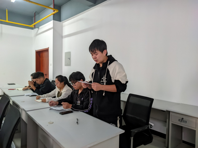 “党旗飘飘引方向,头雁领航谱新篇”主题党日活动中,员工和老师接龙式诵读党章,让声音凝聚力量,澎湃起所有人的心潮。“我骄傲,我是中国共产党人!”随后进行的是由预备党员谈学习新思想的感悟交流分享会。来自20机械的王浩同学在他的经验分享中提到:“员工干部应当增强服务意识,克服官僚主义,为有需要的同学提供帮助。注重个人素质,带动他人素质。”陈越同学说:“我们必须时刻牢记从严治党,加强党的领导和推动党的事业,加强基层党组织的保垒作用,加强个人能力锻炼。”通过领学员工的经验分享,让在座的员工领悟到了武装自我精神的重要性和长期性,员工们表示将会在未来的学习中提高质量,以学习作为跳板拓宽视野。熊同强老师对以上同学的领学表示了肯定与表扬,并希望各位同学在学习感悟新思想的时候能够一心一意、精益求精,学习新思想,争做新青年。