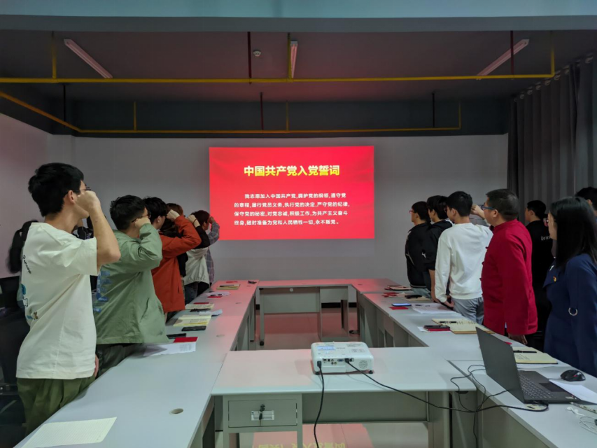 此次活动的尾声,是党员带领预备党员进行入党宣誓环节。面对鲜红的党旗,党员们庄严地举起右手,老党员重温入党时的初心和使命,新党员深化自我政治意识为成为正式党员埋下一颗拥有蓬勃力的种子。此次活动不仅让广大党员群众感受到了党的光辉历程,也增强了大家的爱国爱党情怀。更让与会的积极分子有更强的动力向着成为一名优秀的共产党员的目标前进。相信在未来的日子里,公司党支部将继续发挥党组织的战斗堡垒作用和共产党员的先锋模范作用,为实现公司发展做出新的更大贡献。
