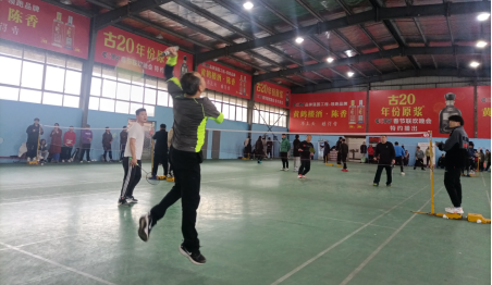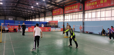 比赛正式开始,整个赛程紧张而激烈,队员们精神饱满,全身心投入比赛。在男双和混双比赛中,只见周国鹏经理卯足了劲,挥汗甩拍,一个反身,一个跳跃,一个扣杀,使得轻盈的羽毛球时而劲急时而轻柔,不停地在空中回旋飞舞,划出美丽的弧线,吸引了全场观众追逐的视线。