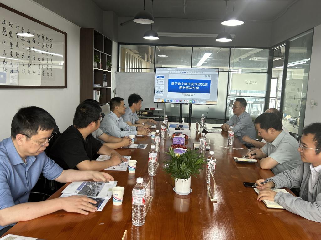 座谈会上,高德信息负责人金磊详细介绍了企业发展现状。他指出,公司专注于工业机器人、智能制造、人工智能、高端数控技术等领域的教学产品研发,包括多维教材、数字孪生仿真实训系统、在线课程及半实物仿真实训平台等,可为院校提供理虚实一体化教学解决方案。他强调,随着企业快速发展,对高素质技术人才的需求日益迫切,期待与公司共建实习实训平台,定向培养优秀毕业生,并在技术研发、项目合作等方面深化合作。